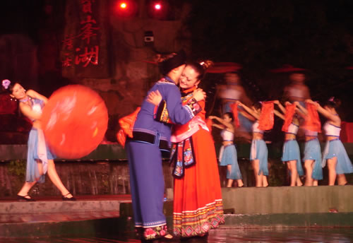 姑娘出嫁,為女人一生中最大的喜事,本應(yīng)充滿幸福、歡樂的氣氛。然而,舊時湘西、湘南、鄂西、川西(成都等地)、黔東(銅仁、凱里一帶)諸地,卻流行著一種與之完全相反情調(diào)的古老婚俗——“哭嫁”。也就是在姑娘“出閣”之前,不但新娘本人哭得很傷心,像淚人一般;而且,新娘的母親、姐妹以及姑媽、姨媽、舅媽及其他交往較多的女友,都要陪著新娘哭。湘西土家族哭嫁的風(fēng)俗尤為普遍、濃厚,不但哭嫁的時間較長(少則十來天,多達個把月),而且哭嫁歌也保存得古樸、完整。 姑娘出嫁為什么要哭?哪有那么多的東西可哭?這是一種蘊含甚為豐厚的人生禮俗,也是一種饒有興趣的婚俗事象。 俗話悅:“人不傷心不落淚!惫媚锍黾拗砸,是因為在舊式婚姻制度下,女孩(尤其是勞苦大眾家庭的女孩)總是作為犧牲品“拋”(賣)給夫家的,她們的身心受到極大傷害。因此,湘西等地的女孩在出嫁之前要哭泣,要呼號,哭嫁歌就是感情發(fā)泄的最好表現(xiàn)方式。 哭嫁的源起 哭嫁的風(fēng)俗,不知道起源于什么時候。戰(zhàn)國時期,趙國的公主嫁到燕國去作王后,她的母親趙太后在臨別時"持其踵,為之泣,祝曰,必勿使返。"大約就是后來長盛不衰的哭嫁風(fēng)俗的濫觴了。 這種風(fēng)俗,直至清末還盛行于四川農(nóng)村中,隨地區(qū)變化而大同小異。解放前,聽老人們說,早些時候,沒有嫁而不哭的人家。如果出現(xiàn)嫁而不哭的姑娘,也會被鄰里看作沒有教養(yǎng)的人,傳為笑柄;相傳有出嫁姑娘不哭而遭母親責(zé)打的事,這位母親當然算得上是入流導(dǎo)演了。 舊時宣講故事中,有花轎臨門,父親強令哭《迎風(fēng)罵媒歌》的情節(jié),可知哭嫁是有歌詞的,帶有表演性質(zhì),原是用來渲染氣氛,以悲襯喜;不過,因為婚姻是包辦的,真哭真罵的也不會少。 抗日戰(zhàn)爭后期,風(fēng)氣較開,哭嫁之風(fēng)已不盛行,而老人們卻還在津津樂道,哭的方式是,從婚期前一個月的首日起,入黃昏,姑娘訴哭約一個小時,其聲嗚嗚。十天以后,她的母親加入"陪哭";又十天以后,她的祖母加入陪哭。這家沒有諸姑姊妹,人們說,如果有的話,也應(yīng)當加入陪哭行列的。 哭嫁在川西叫"坐堂"。清代吉道人《味蔗軒隨筆·坐堂詞》云:"婚姻之禮,各省風(fēng)俗不同。然酌禮準情,各省亦大同小異。凡男家娶婦先賦之詩,謂之'催妝';女家親串頌女之詞,謂之'坐堂'。坐堂者,女當喜期將近之先數(shù)夕,其諸姑伯姊,置酒為女祖餞,各述吉祥之詞,以為頌美,女則申己之意以答。女左右更有少女,則隨而嫻習(xí)者也。其詞要多鄙俚,然有音韻凄清,風(fēng)格遒勁,如古歌古謠者。羅江明府蔡,微服巡查鄉(xiāng)里,一日行至某處,值有女子歸,諸娣姒咸以諛詞頌女,女申意以答。忽風(fēng)吹句入耳,詞曰:'鳳凰落在桌子上,哪個女兒肯離娘'。一字一轉(zhuǎn),音韻凄其,誰謂天籟之鳴,不在愚夫愚婦耶!"云云。吉道人姓周名際唐,成都人。吉道人記得明明白白,可惜他只記了一句哭嫁詞,難窺全貌。好在舊時坊間叢刻中有《訓(xùn)女哭嫁》一種,可見一斑。這本小書的目錄有《閨聲哭》、《娘訓(xùn)女》、《嫂哭妹》、《哭爹媽》、《哭哥嫂》、《花轎到屋哭》、《哭叔爺》、《哭兄弟》、《哭外公外婆》、《哭舅爺》、《拜香火哭》等等,編次有點凌亂,似乎隨手所記,未經(jīng)文人之手。遙想《詩》十五國風(fēng)未刪之時,大約也不過如此吧! 閨聲哭 娘聽后園鳥雀驚,要聽房中女兒聲。 我娘當門苦葛藤,手攀苦葛訴苦情。 我娘苦情苦過了,女兒苦情才起根。 ............ 桔子開花葉子青,陽雀開聲我開聲。 新打銅盆才裝水,新打剪刀兩面青。 娘不開口我開口,娘不開聲我開聲。 當門一根木蓮樹,目連樹上掛卷經(jīng)。 一本經(jīng)書背完了,未見我娘來開聲。 虧了我娘睡得穩(wěn),爹媽眼淚貴如金。 哭爹媽 月亮彎彎照華堂,女兒開言叫爹娘。 父母養(yǎng)兒空指望,如似南柯夢一場。 一尺五寸把兒養(yǎng),移干就濕苦非常。 ............ 勞心費力成虛恍,枉自爹娘苦一場。 哭兄弟 黑漆茶盤烏木頭,姐姐離娘弟不留。 留到姐姐吃你飯,留到姐姐穿你衣。 兄弟當家掙家忙,嫁了姐姐買地方。 上頭買齊潼川府,下頭買齊遂寧鄉(xiāng)。 ............ 這個本子所記是川北的歌詞,以前所見的是川南,吉道人所記的是川西,川東,大約也不會大異的。遺憾的是,該書所記哭嫁詞雖有"只怨媒人莫良心"等語,卻沒有列出"罵媒專目,大約是怕媒人太難堪了吧! 其實,罵媒是哭嫁中必不可少的節(jié)目,也是最具反抗色彩的哭嫁歌詞。舊社會,婦女無婚姻自由可言,由于"三從四德"的束縛,平時對于自己的終身大事幾乎不能置一詞,全由媒人和父母擺布;因此,這登花轎之前的"罵媒",便是難得的發(fā)泄機會。這早已反映在戲曲和民間說唱等藝術(shù)之中。 以前,川劇《柳蔭記》有《英臺罵媒》一折,英臺罵媒人,言詞激烈,聲色俱厲,充分表現(xiàn)了祝英臺剛烈的性格和反封建精神。她罵道:"提媒婆,更恨她,胡言亂語嘴喳喳......唯愿你,房屋遭火化,田園水推沙。"但這場戲現(xiàn)在卻被刪掉了,五六十年代還有的,全國第一屆戲曲會演的川劇《柳蔭記》也有這一折,是陳書舫演的祝英臺,得了一等獎,F(xiàn)在城里人大約以為媒婆不必罵了,但偏遠地區(qū),媒婆似乎還在肆虐。不過,據(jù)說,媒人從來不怕你罵,反倒怕你不罵;你不罵,他的"