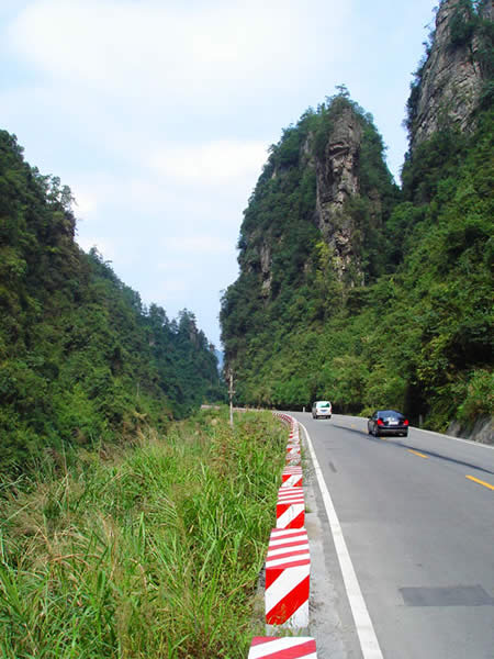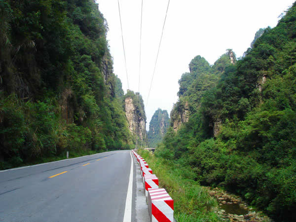 百丈峽圖片 百丈峽是武陵源風(fēng)景名勝區(qū)通往張家界市的公路貫通整個(gè)峽谷,因有堵高近百丈的石壁,直插云霄,不敢仰視,故而得名。據(jù)《慈利縣志》載,索溪峪右得百丈峽,峽長三十公里……又相傳向王天子起義軍與官兵在此先后博殺一百仗,依此又名百仗峽。明代九永兵備胡桂芳,一生好游歷山川,來到百丈峽后題寫了一首七言詩:“峽高百丈洞云深,要識(shí)桃源此處尋;戎旅徐行風(fēng)雪緊,誰將興盡類山蔭!笨逃趰{內(nèi)道旁石壁上。