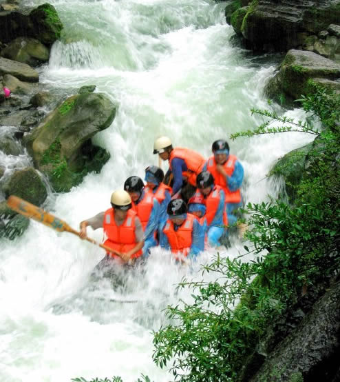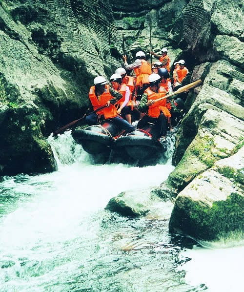西門峽 西門峽漂流全程6公里,屬萬溶江流域,它發(fā)源于兩頭羊自然保護(hù)區(qū)的群山之中;沿途危崖夾峙,樹木蔥榮,水質(zhì)清澈、急流、險(xiǎn)灘星落棋布。共有虎跳澗、白龍灘、臥龍灘、青龍峽、鬼見愁、龍王灘等急流險(xiǎn)灘30余個(gè)。其中以青龍灘最為著名,它全長400米,落差20余米。它和龍王灘一道堪稱國內(nèi)漂流之經(jīng)典。