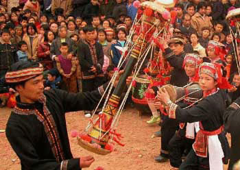 仗鼓舞是白族的一種獨(dú)特舞蹈,尤其是張家界天子山一帶的白族人,大都愛跳仗鼓舞。逢年過節(jié)、游神、趕會,山山寨寨都要舉行歡樂的“跳舞節(jié)”。仗鼓舞根據(jù)人數(shù)多少,分為4人舞、8人舞、32人舞等多種形式,主要道具是仗鼓,鼓長1.2米,兩頭粗,中間細(xì),因兩頭緊繃牛皮,敲擊時(shí)便“嘭嘭”作響。跳舞前須祭祀祖先,然后由三位德高望重的老者先入場引導(dǎo)圍圈歡跳,擺呵、蹬呵、拍呵,繞著場子一圈又一圈地跳,鼓聲陣陣,還有嗩吶、笛子等樂器伴奏,舞姿靈活多變,古樸大方,驚險(xiǎn)敏捷,民族色彩濃郁。