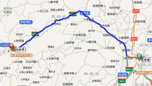 常德市到張家界自駕車路線圖