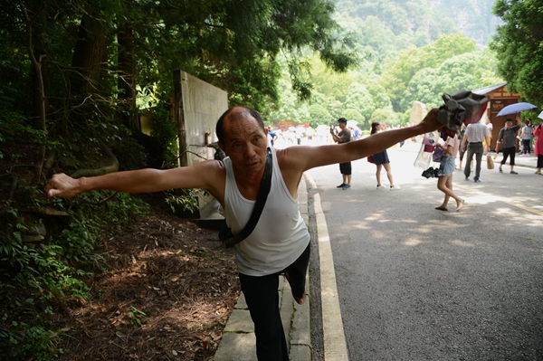 三是老人有嫻熟恰當?shù)氖址āZw如秋老人經常穿梭在武陵源景區(qū),對張家界的山形非常熟悉。6月9日當天,他得知兩位游客在袁家界天下第一橋懸崖遇險后反應迅速又非常理智。因為下雨天,他選擇赤腳救人,增加了救援成功的安全系數(shù)。在救人過程中,他選擇先救小孩,再救成年游客,并不斷安慰他們,最后一舉成功幫助游客轉危為安。